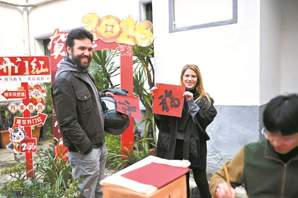 书法老师姜雪的摊位颇为热闹,她免费为外国友人写名字。不知不觉,已是18时,姜雪正准备下班,又有几位意大利人走进来,她便再次坐下,一一满足大家的需求。“看到意大利人这么踊跃地想要了解中国文化,我不忍心拒绝。”姜雪说,这几年能明显感受到,他们对中国文化的喜爱愈发浓厚。