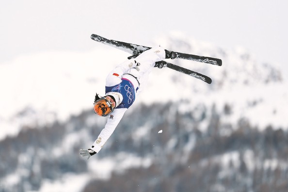 自由式滑雪女子空中技巧决赛,参加5届冬奥的36岁老将徐梦桃以112.90分卫冕该项目金牌,成为自由式滑雪空中技巧冬奥史上首位连冠选手 特约记者 钱俊 摄