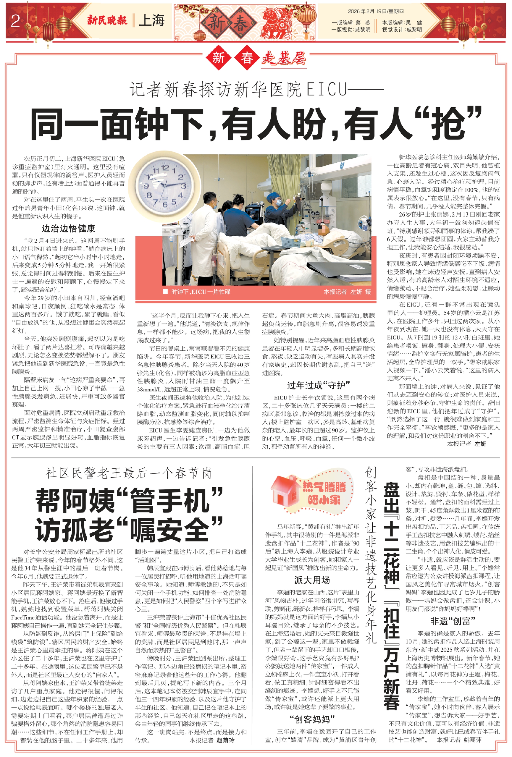 农历正月初二,上海新华医院EICU(急诊重症监护室)里灯火通明。这里没有喧嚣,只有仪器规律的滴答声、医护人员轻而稳的脚步声,还有墙上那面普通得不能再普通的时钟。