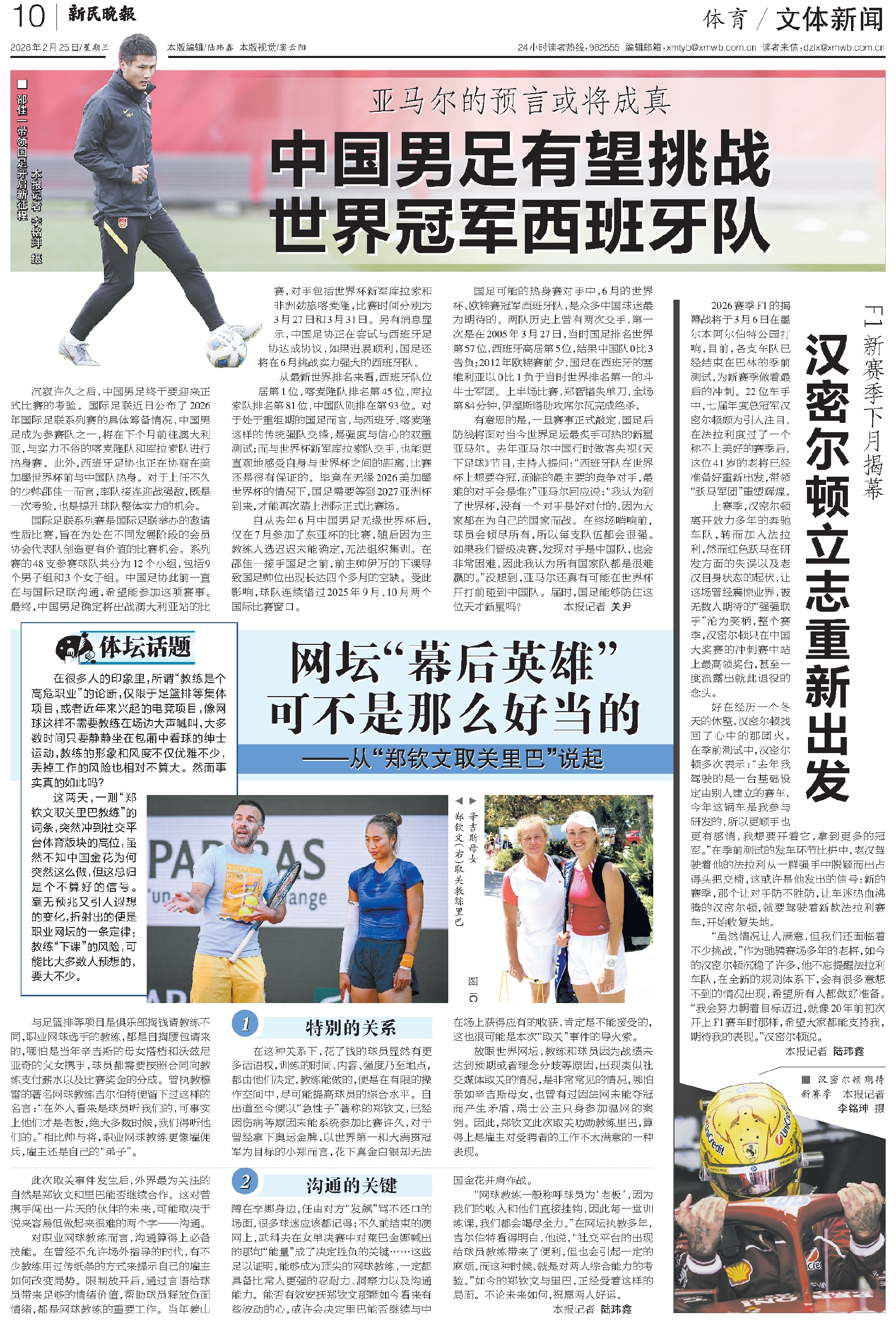 汉密尔顿立志重新出发 网坛“幕后英雄”可不是那么好当的 中国男足有望挑战世界冠军西班牙队