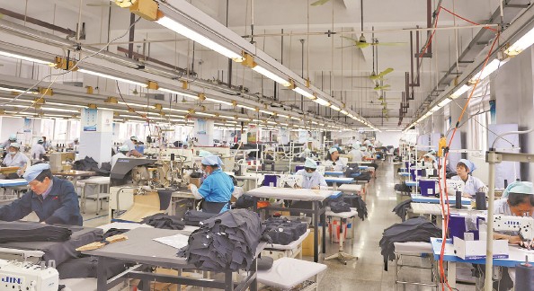 打工人上岗 昨天,金山区朱泾镇上海永太服装(金山)有限公司内一派忙碌,工人们在各自岗位上操作着,全力保障国内外西服订单如期交付。 本报记者 陶磊 摄影报道