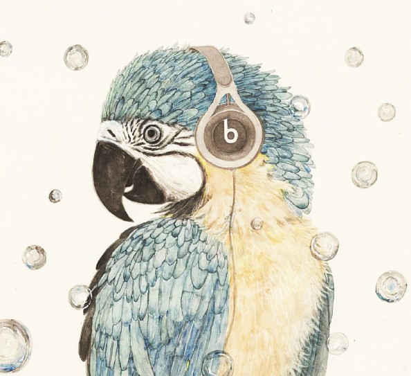 展览中,鲍莺的作品《城市山民》(见左图)格外引人注目,画面中,一只蓝黄金刚鹦鹉戴着品牌耳机,与无数透明的泡泡一同悬浮于纸本之上,充满了轻盈的幽默感。艺术家用这些泡泡,巧妙地消解了传统工笔花鸟的严肃性,让画面充满当代的趣味与哲思。为了让观众能将这份艺术灵感带回家,馆方还特别将这件作品裁制成手机壁纸,供参观者免费下载。这一创新之举,让艺术从展厅的墙上“走”进了观众的日常生活,受到了热烈欢迎。