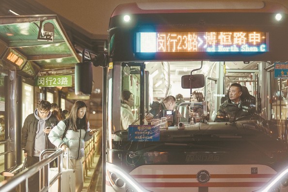 夜色深沉,城市灯火照亮归途。延时的地铁、加开的公交、坚守的身影,一同传递着上海的温度,让深夜抵达的人们不再孤单。 图为虹桥火车站增设多条临时公交线,方便深夜抵达的旅客回家 本报记者 陈梦泽 摄影报道 (相关报道见第8版)