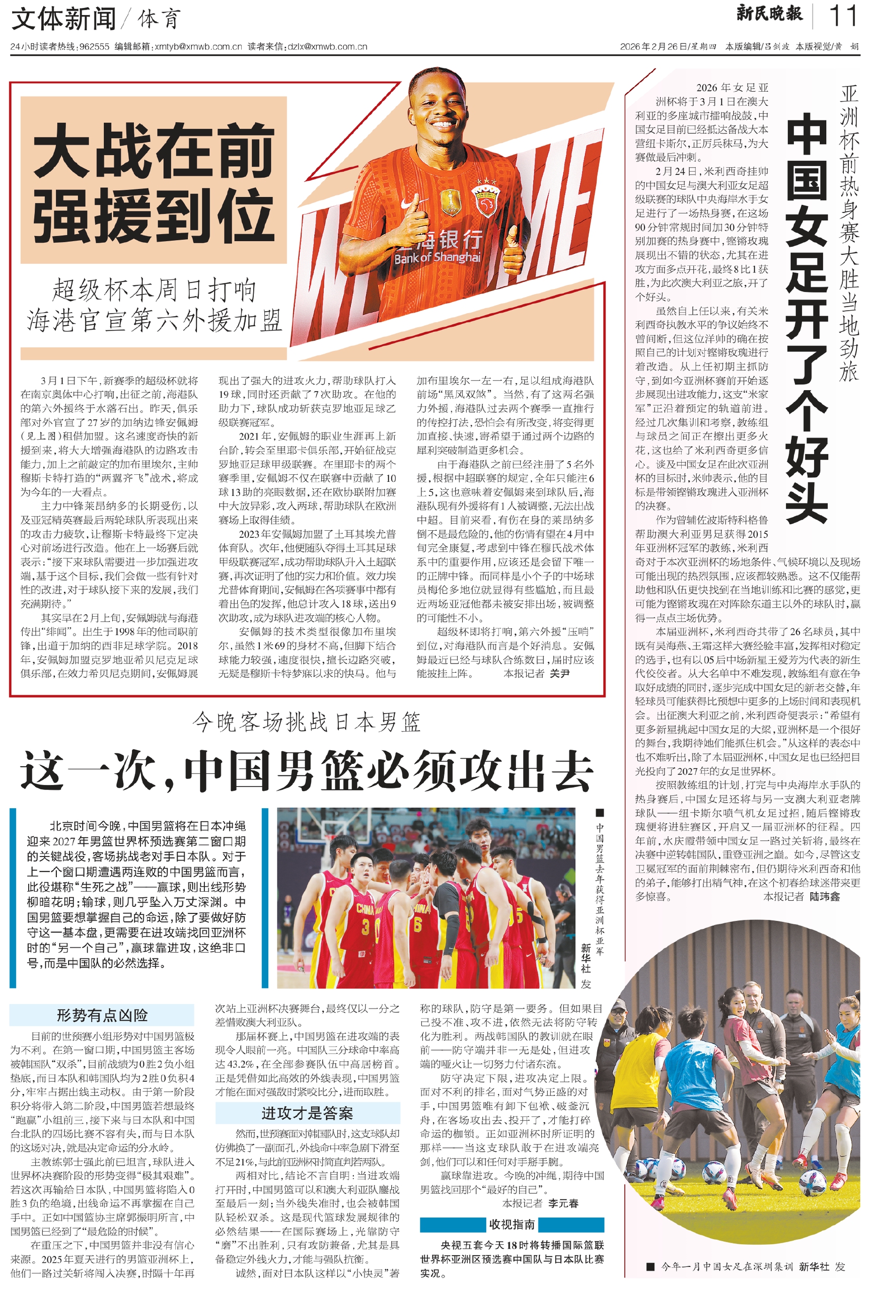 超级杯即将打响,第六外援“压哨”到位,对海港队而言是个好消息。安佩姆最近已经与球队合练数日,届时应该能披挂上阵。 本报记者 关尹