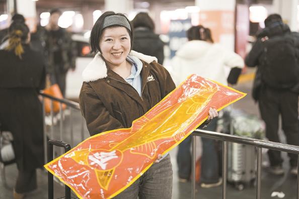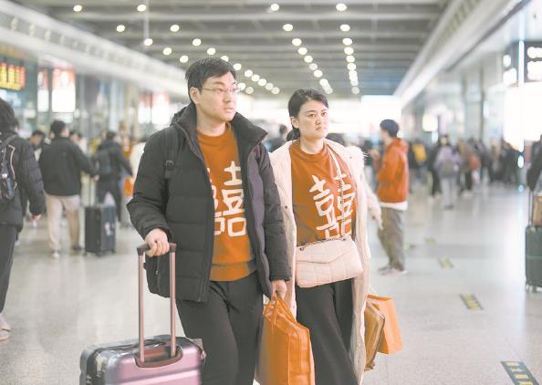 旅客穿着“双喜”衣服,提着大包小包返回上海