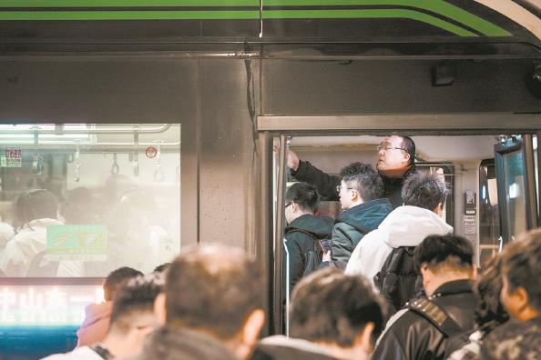 在地铁站等候末班车的旅客