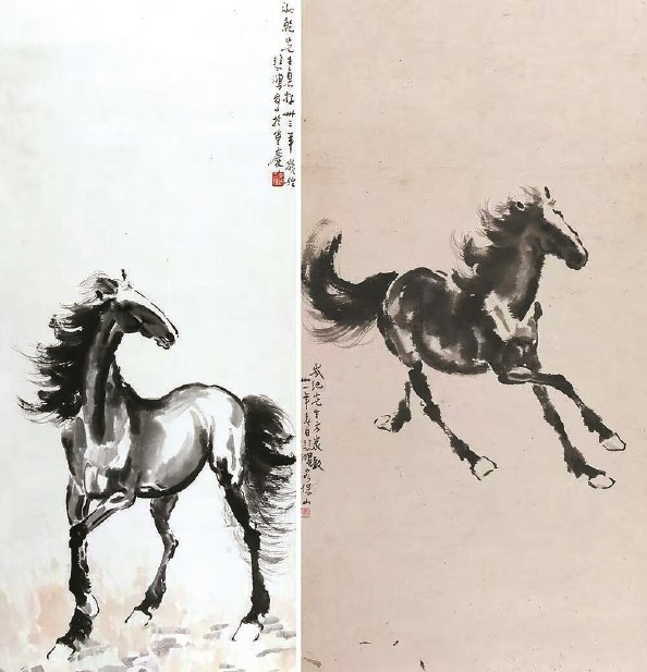 徐悲鸿《瞻途》(左)、《驰远》(右)