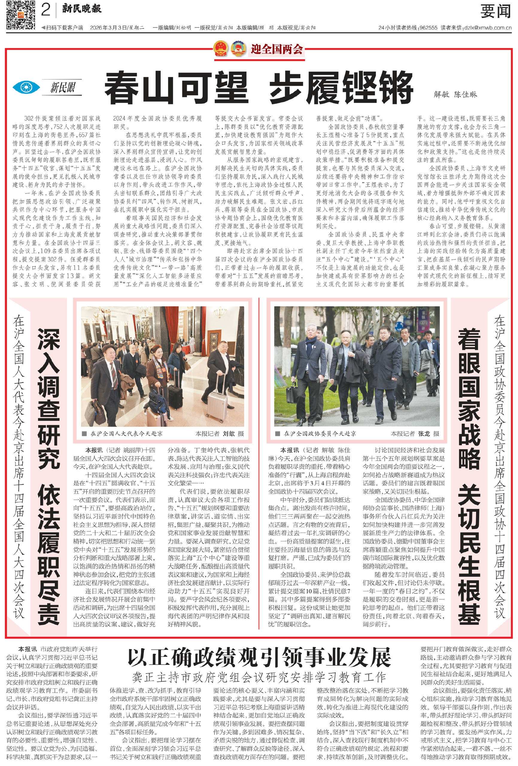 春山可望,步履铿锵。从黄浦江畔到北京会场,委员们将以饱满的政治热情和强烈的责任担当,把上海的实践经验转化为高质量建言,把在基层一线倾听的民声期盼汇聚成务实良策,在凝心聚力服务中国式现代化的新征程上,续写更加精彩的履职篇章。
