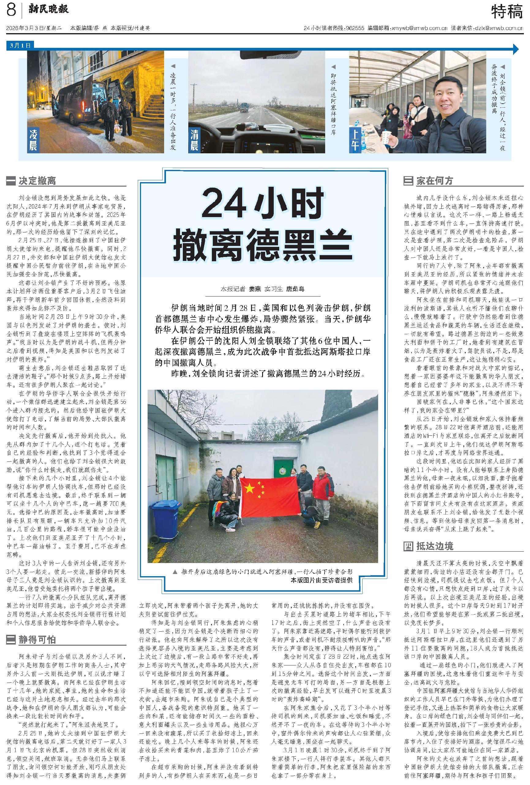 昨晚,刘全锁向记者讲述了撤离德黑兰的24小时经历。