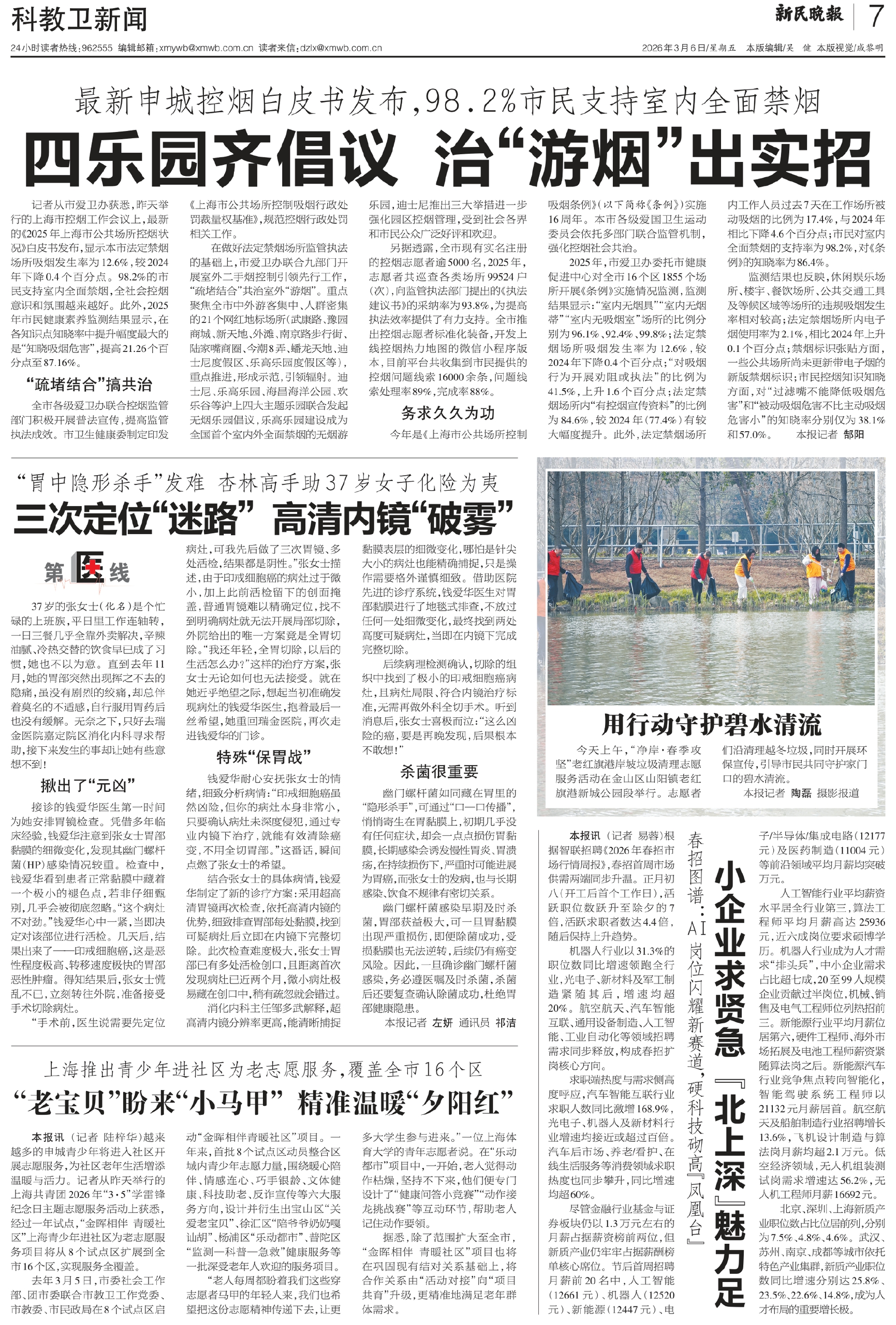 记者从市爱卫办获悉,昨天举行的上海市控烟工作会议上,最新的《2025年上海市公共场所控烟状况》白皮书发布,显示本市法定禁烟场所吸烟发生率为12.6%,较2024年下降0.4个百分点。98.2%的市民支持室内全面禁烟,全社会控烟意识和氛围越来越好。此外,2025年市民健康素养监测结果显示,在各知识点知晓率中提升幅度最大的是“知晓吸烟危害”,提高21.26个百分点至87.16%。