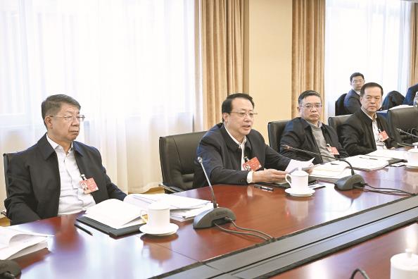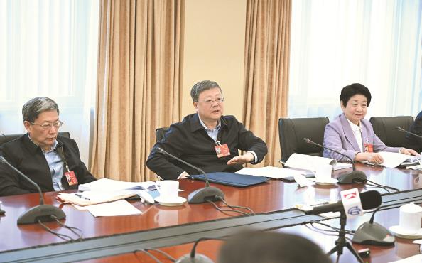 陈吉宁代表、黄莉新代表参加上海代表团审议 本报记者 陈正宝 摄