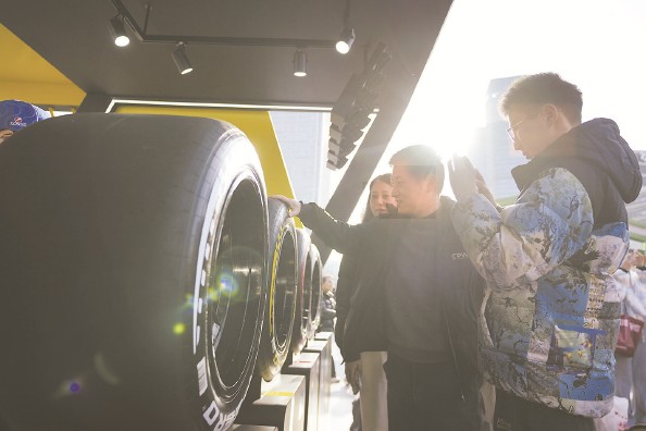 除了穿的戴的,在格子旗嘉年华现场,有不少市民热衷于体验F1维修间和驾驶舱内的同款工作,换胎、驾驶模拟器等,都让游客在这个初春的午后,有了一次特别的体验。