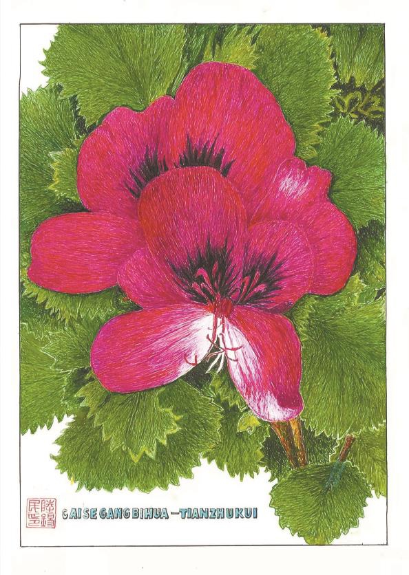 天竺葵(彩色钢笔画)