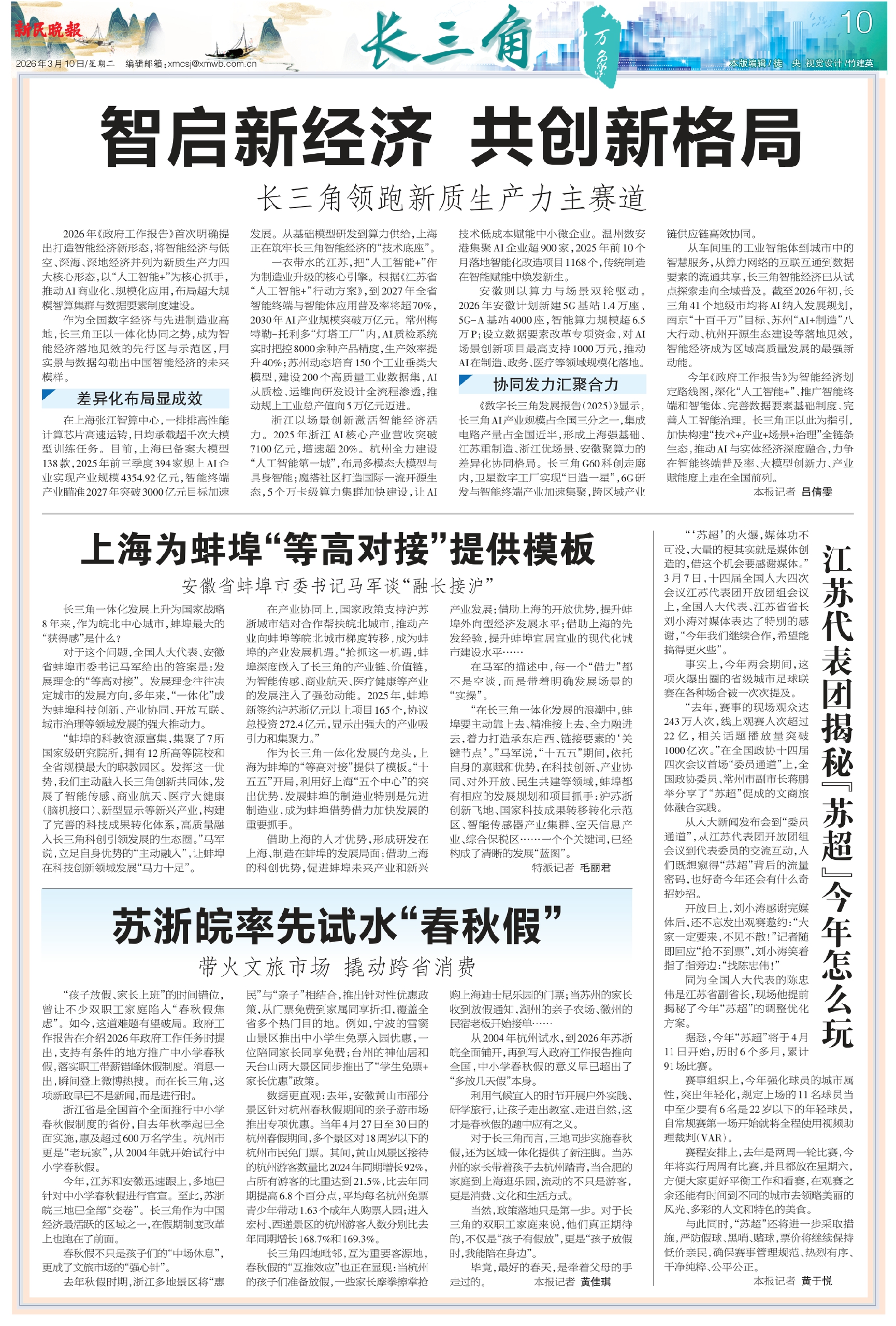 今年《政府工作报告》为智能经济划定路线图,深化“人工智能+”、推广智能终端和智能体、完善数据要素基础制度、完善人工智能治理。长三角正以此为指引,加快构建“技术+产业+场景+治理”全链条生态,推动AI与实体经济深度融合,力争在智能终端普及率、大模型创新力、产业赋能度上走在全国前列。