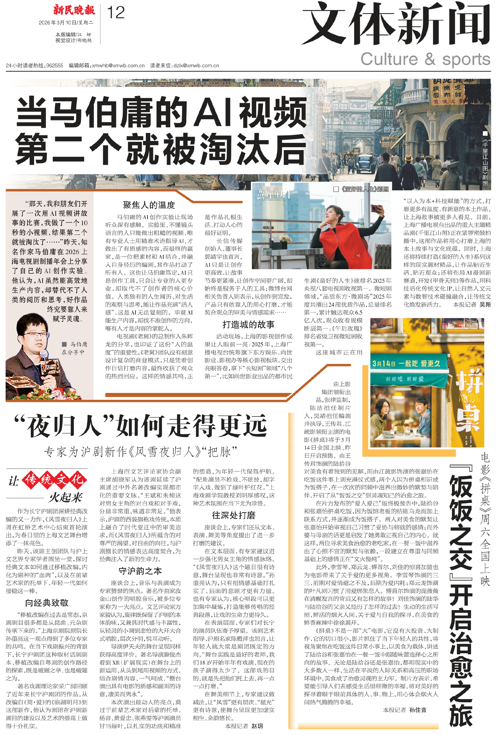 “那天,我和朋友们开展了一次用AI视频讲故事的比赛,我做了一个10秒的小视频,结果第二个就被淘汰了……”昨天,知名作家马伯庸在2026上海电视剧制播年会上分享了自己的AI创作实验。他认为,AI虽然能高效地生产内容,却替代不了人类的阅历和思考,好作品终究要靠人来赋予灵魂。