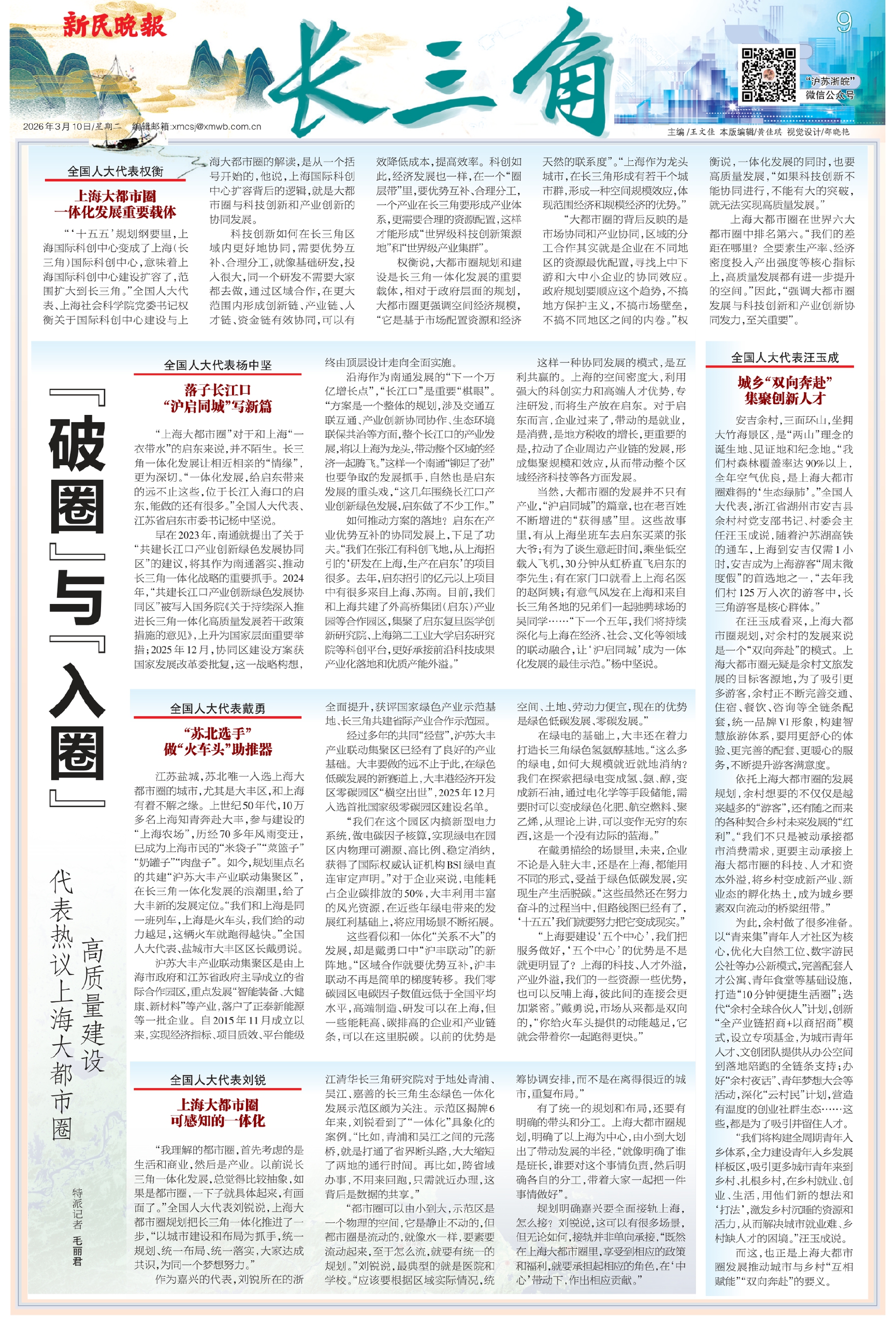 “我理解的都市圈,首先考虑的是生活和商业,然后是产业。以前说长三角一体化发展,总觉得比较抽象,如果是都市圈,一下子就具体起来,有画面了。”全国人大代表刘锐说,上海大都市圈规划把长三角一体化推进了一步,“以城市建设和布局为抓手,统一规划、统一布局、统一落实,大家达成共识,为同一个梦想努力。”