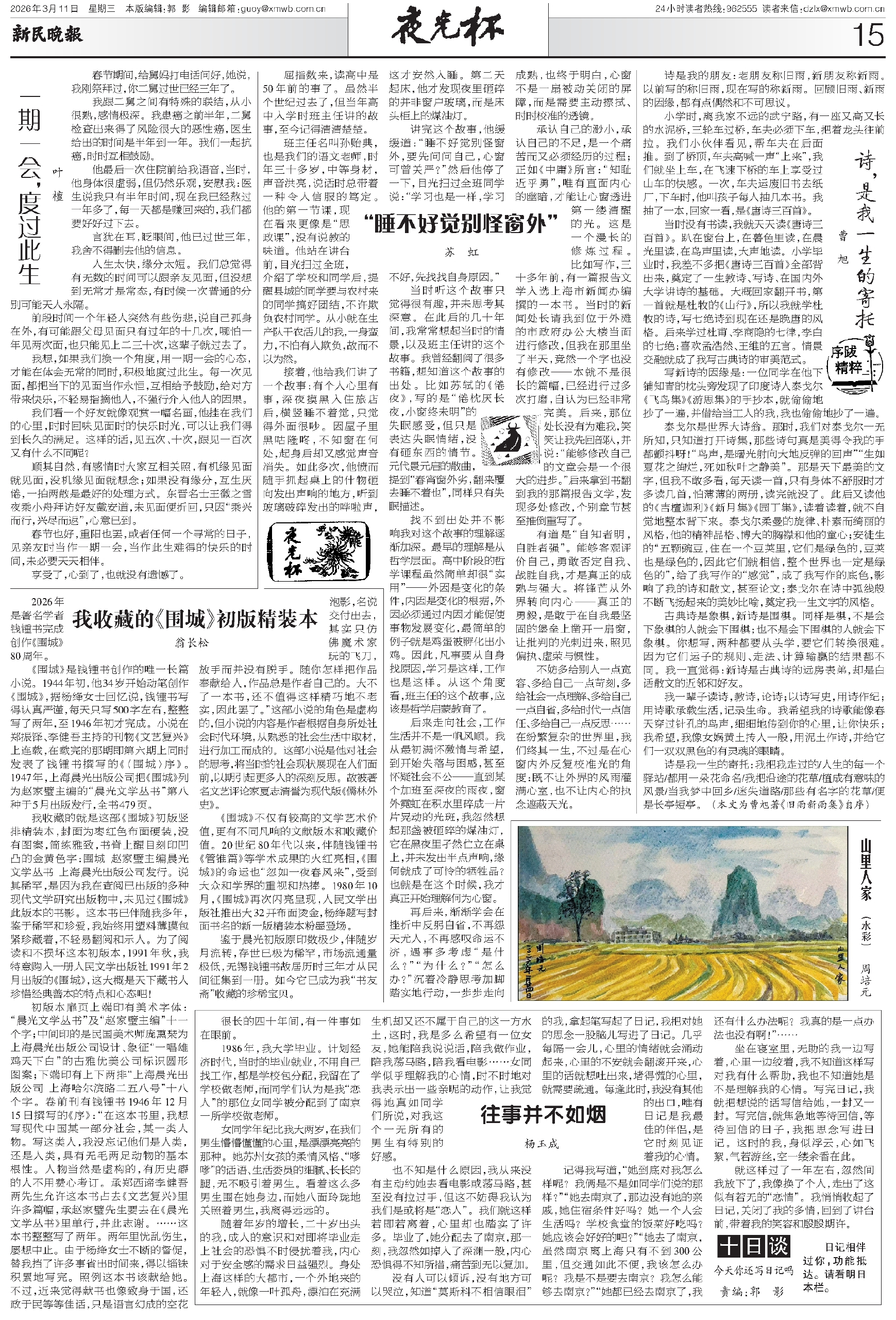 春节也好,重阳也罢,或者任何一个寻常的日子,见亲友时当作一期一会,当作此生难得的快乐的时间,未必要天天相伴。