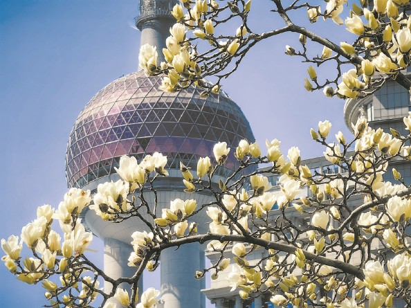 浦东陆家嘴中心绿地,白玉兰竞相绽放 杨建正 摄