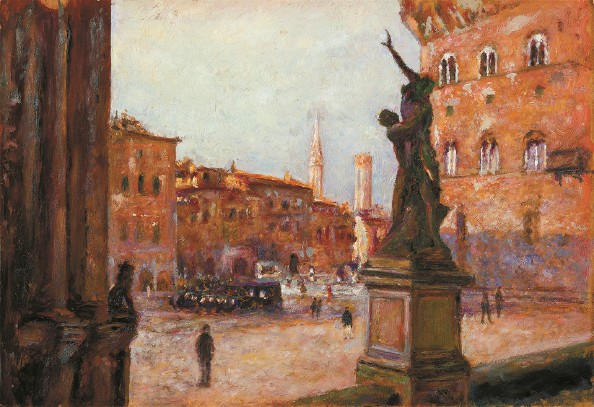 颜文樑《佛罗伦萨广场》纸板油彩
