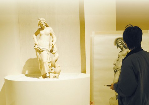 “我们现在用作绘画道具的一些石膏,经过不断翻制,到现在学生临摹的用具已经有点变形了,比例上都会有点误差。”艺术家庄廷峄感慨。青年艺术家桑侃正对着朱庇特的雕塑,修饰着画作的局部细节。他说:“写生写的不只是形,更是神。这种震撼感,在照片里很难感受到。”
