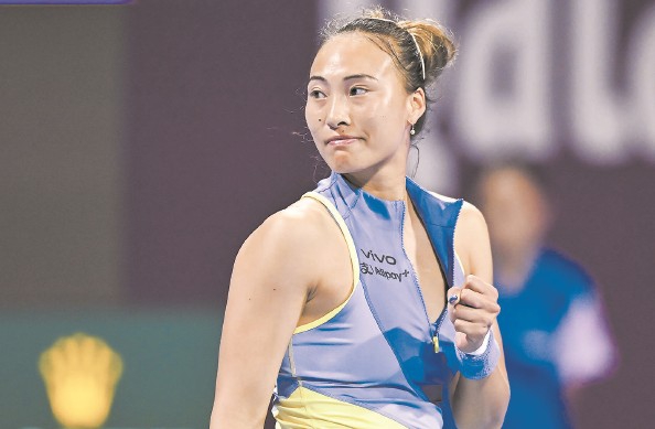 郑钦文庆祝得分 新华社 发