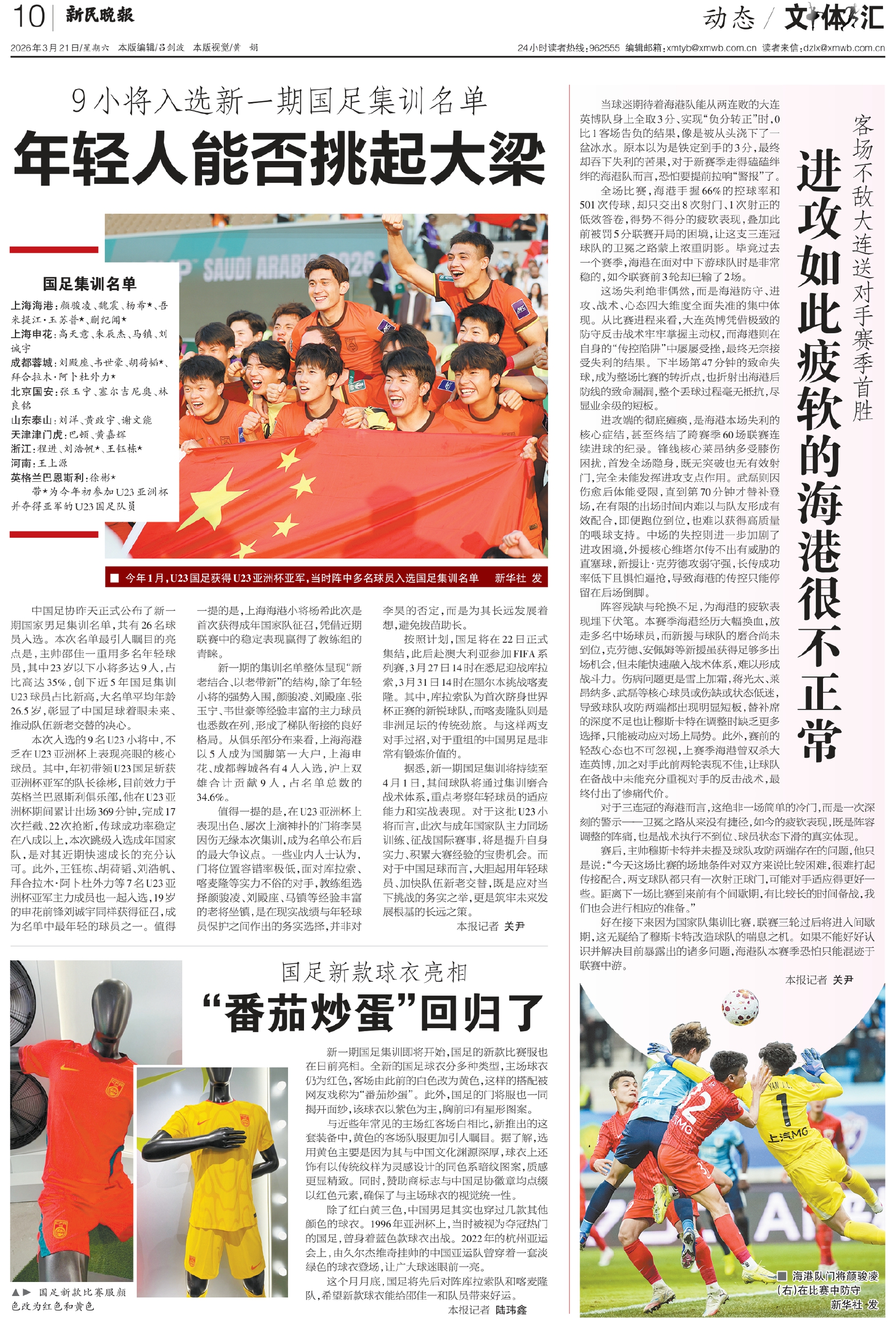 中国足协昨天正式公布了新一期国家男足集训名单,共有26名球员入选。本次名单最引人瞩目的亮点是,主帅邵佳一重用多名年轻球员,其中23岁以下小将多达9人,占比高达35%,创下近5年国足集训U23球员占比新高,大名单平均年龄26.5岁,彰显了中国足球着眼未来、推动队伍新老交替的决心。