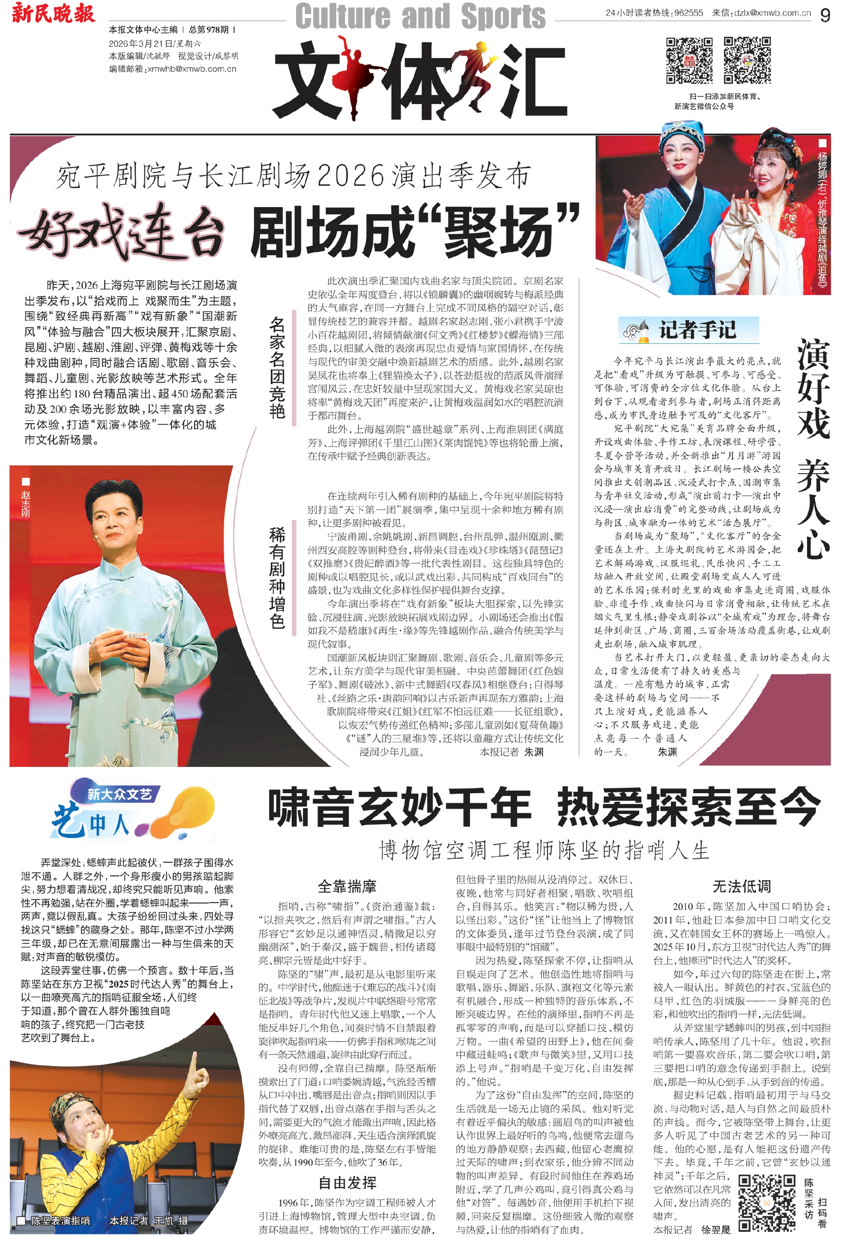 昨天,2026上海宛平剧院与长江剧场演出季发布,以“拾戏而上 戏聚而生”为主题,围绕“致经典再新高”“戏有新象”“国潮新风”“体验与融合”四大板块展开,汇聚京剧、昆剧、沪剧、越剧、淮剧、评弹、黄梅戏等十余种戏曲剧种,同时融合话剧、歌剧、音乐会、舞蹈、儿童剧、光影放映等艺术形式。全年将推出约180台精品演出、超450场配套活动及200余场光影放映,以丰富内容、多元体验,打造“观演+体验”一体化的城市文化新场景。