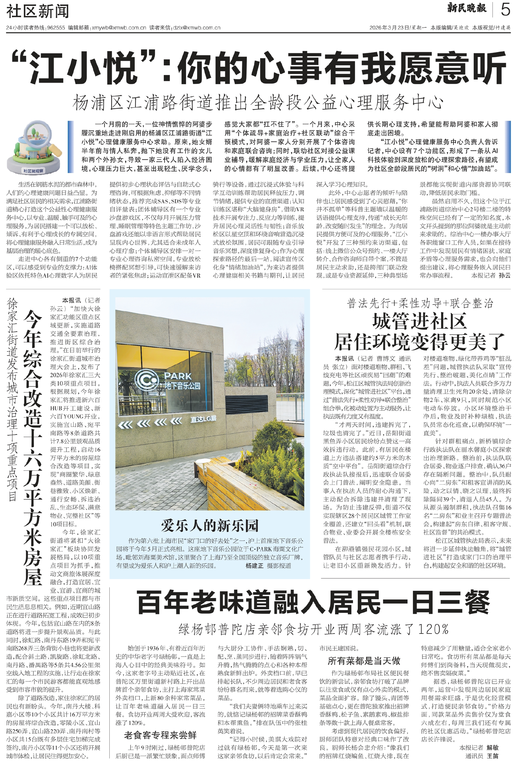 一个月前的一天,一位神情憔悴的阿婆步履沉重地走进刚启用的杨浦区江浦路街道“江小悦”心理健康服务中心求助。原来,她女婿半年前与情人私奔,抛下她没有工作的女儿和两个外孙女,导致一家三代人陷入经济困境,心理压力巨大,甚至出现轻生、厌学念头,感觉大家都“扛不住了”。一个月来,中心采用“个体疏导+家庭治疗+社区联动”综合干预模式,对阿婆一家人分别开展了个体咨询和家庭联合咨询;同时,联动社区对接公益课业辅导,缓解家庭经济与学业压力,让全家人的心情都有了明显改善。后续,中心还将提供长期心理支持,希望能帮助阿婆和家人彻底走出困境。