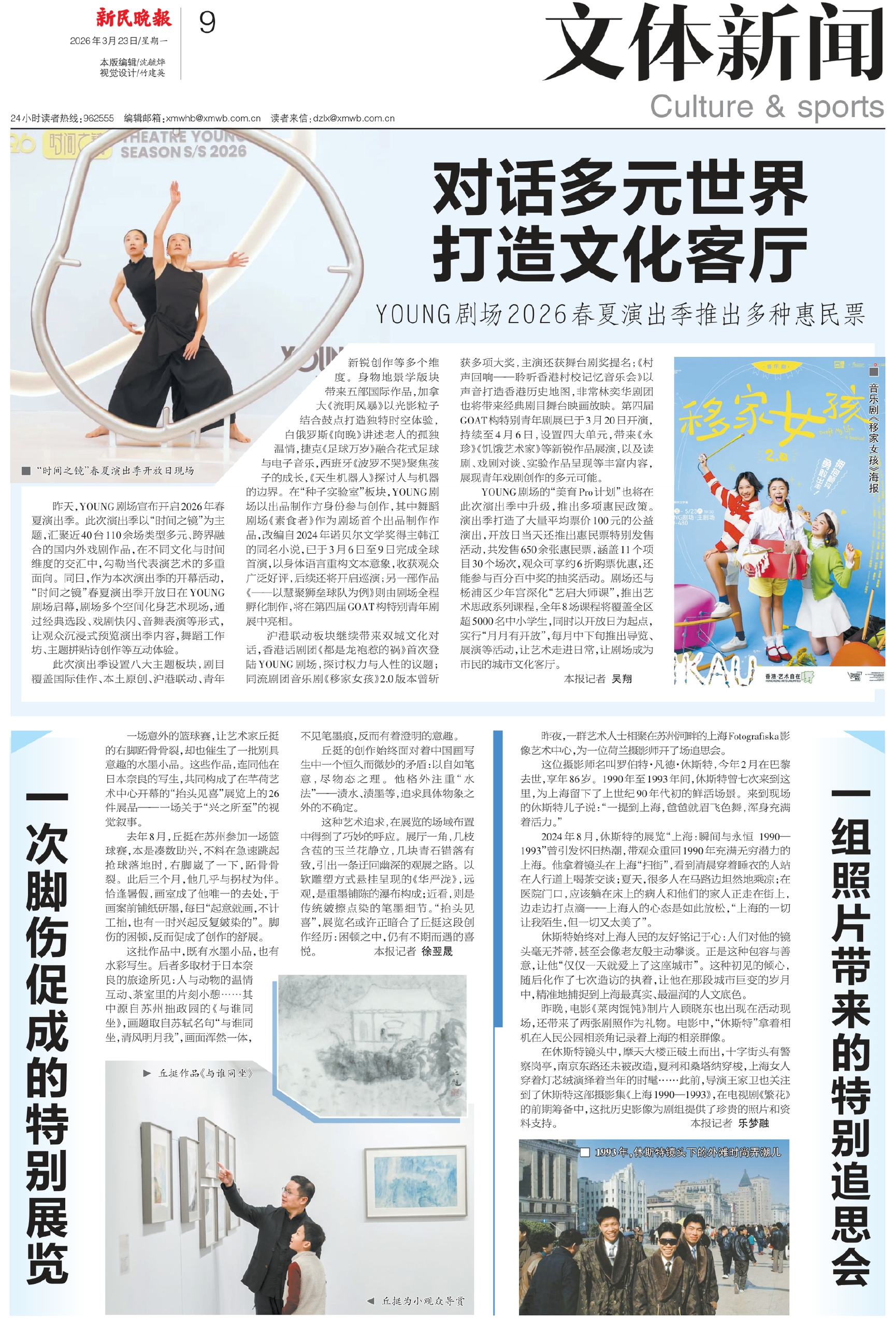 昨天,YOUNG剧场宣布开启2026年春夏演出季。此次演出季以“时间之镜”为主题,汇聚近40台110余场类型多元、跨界融合的国内外戏剧作品,在不同文化与时间维度的交汇中,勾勒当代表演艺术的多重面向。同日,作为本次演出季的开幕活动,“时间之镜”春夏演出季开放日在YOUNG剧场启幕,剧场多个空间化身艺术现场,通过经典选段、戏剧快闪、音舞表演等形式,让观众沉浸式预览演出季内容,舞蹈工作坊、主题拼贴诗创作等互动体验。