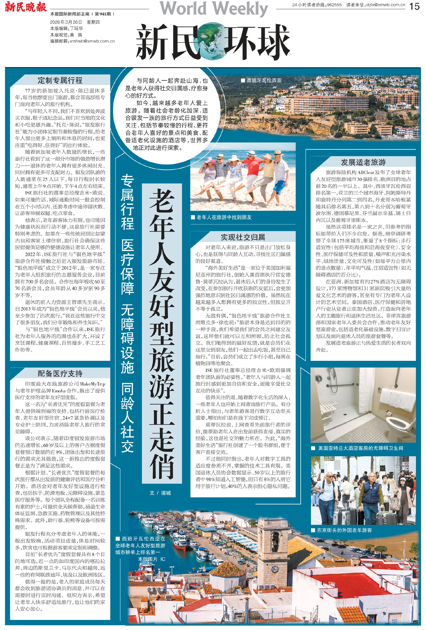 如今,越来越多老年人爱上旅游。随着社会老龄化加深,适合银发一族的旅行方式日益受到关注,包括节奏较慢的行程、更符合老年人喜好的景点和美食、配备适老化设施的酒店等,世界多地正对此进行探索。
