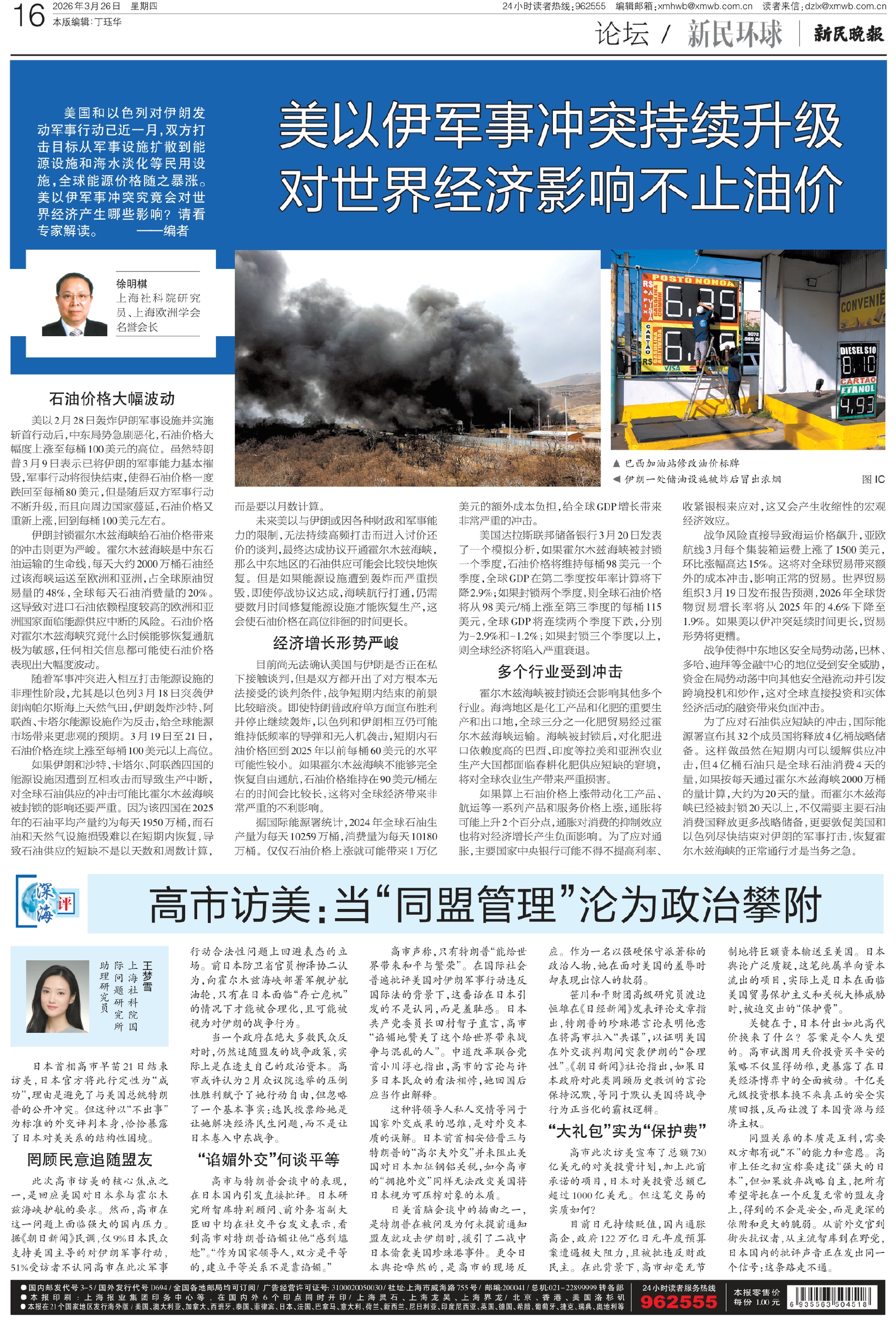 美国和以色列对伊朗发动军事行动已近一月,双方打击目标从军事设施扩散到能源设施和海水淡化等民用设施,全球能源价格随之暴涨。美以伊军事冲突究竟会对世界经济产生哪些影响?请看专家解读。 ——编者