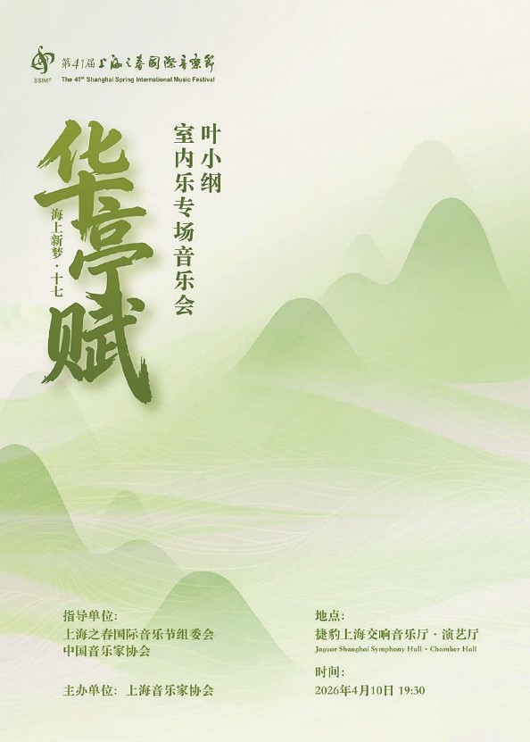 作为本届“上海之春”的重磅委约作品,《华亭赋——叶小纲室内乐专场音乐会》由中国音乐家协会主席、作曲家叶小纲为上海量身创作。这台室内乐专场音乐会聚焦上海城市精神,作品汲取江南音韵,融合海派文化底蕴,以室内乐与艺术歌曲的细腻表达,勾勒出城市百年风华与人文风骨。