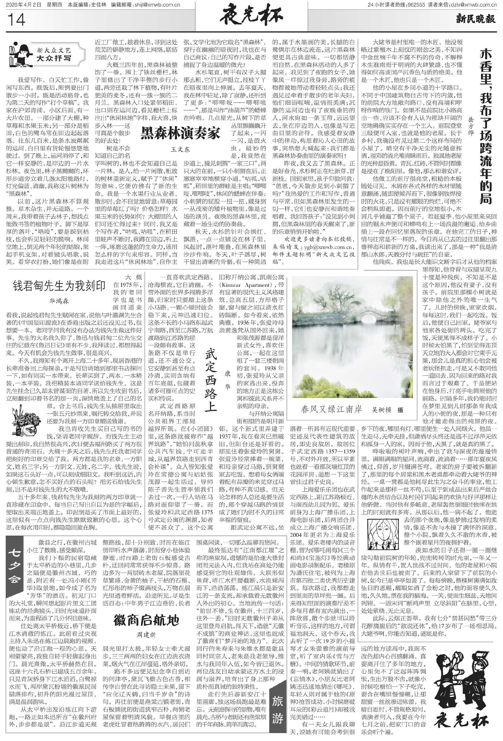 欢迎更多读者向本栏投稿,来稿请发:ygb@xmwb.com.cn,邮件主题标明“新大众文艺投稿”。