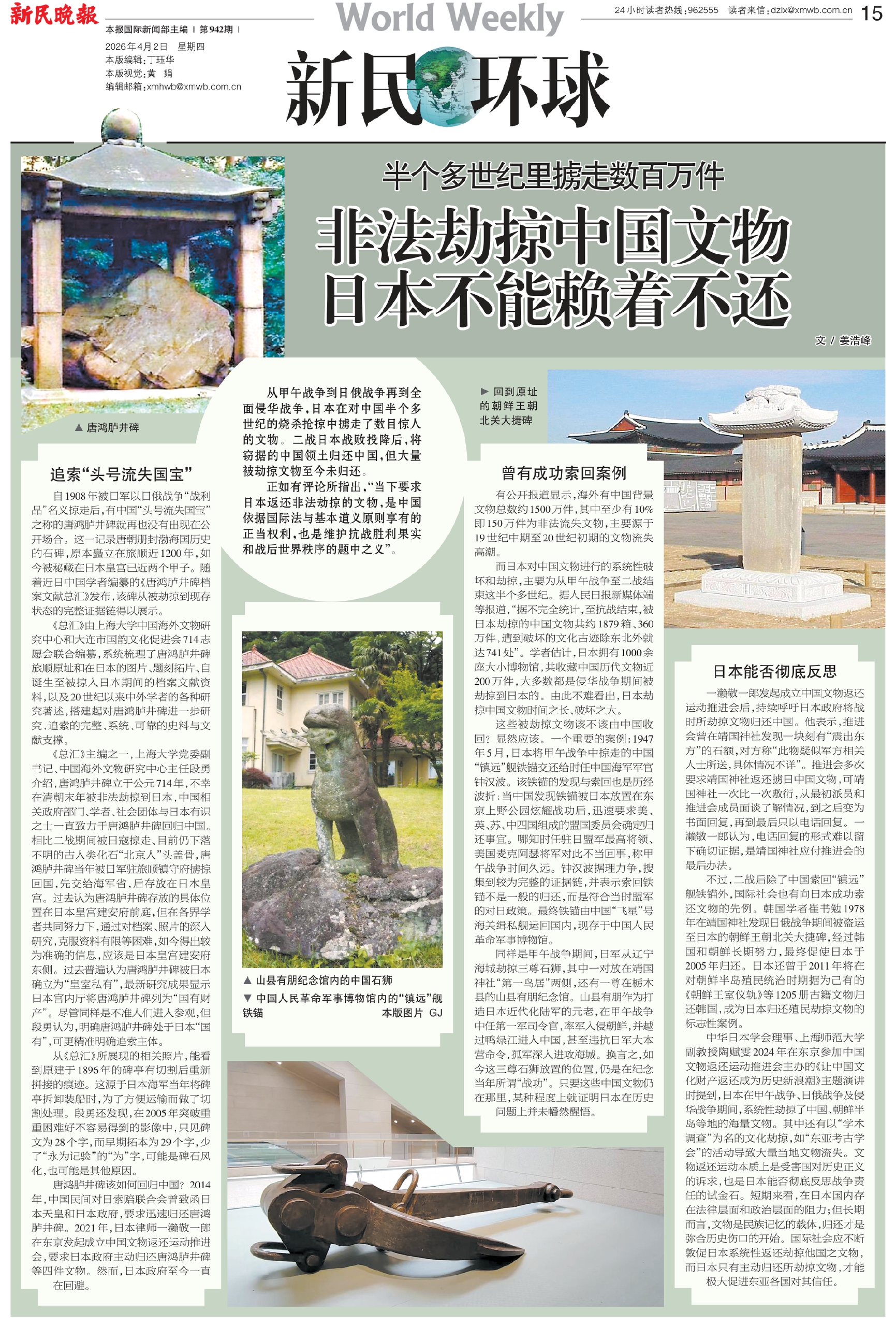 正如有评论所指出,“当下要求日本返还非法劫掠的文物,是中国依据国际法与基本道义原则享有的正当权利,也是维护抗战胜利果实和战后世界秩序的题中之义”。