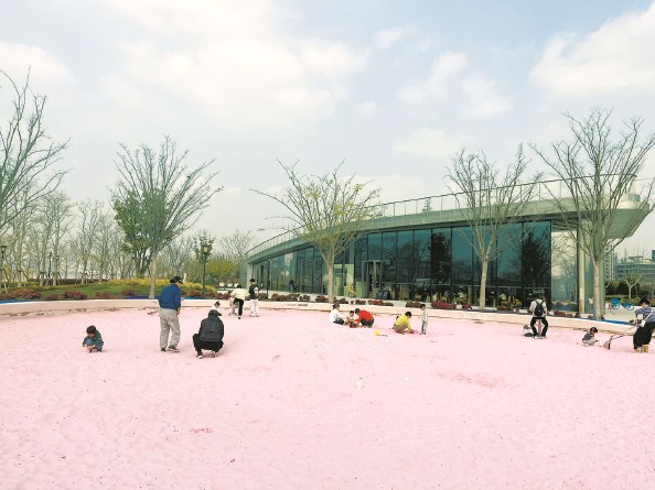 浦东前滩休闲公园内的粉红沙滩凭借高颜值吸粉无数 裘颖琼 摄