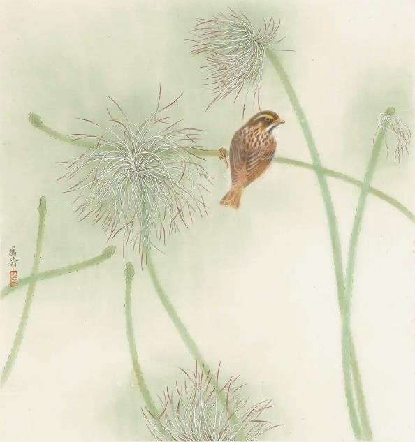 白头翁·黄眉鹀(纸本设色)
