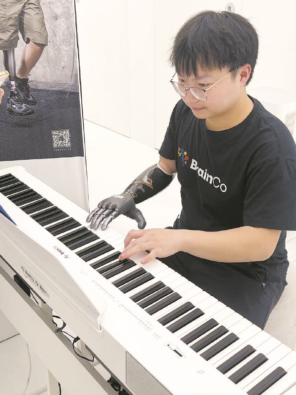 周键用智能仿生手弹琴 本版摄影 杜雨敖