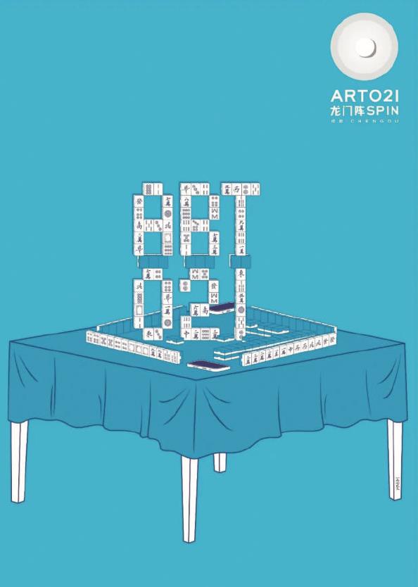 从明天起,成长于上海的艺博会品牌ART021将第一次亮相成都,呈现一种独特的松弛生活体验,试图用“巴适”的心态拥抱当代艺术。“龙门阵”源自成都方言,承载着当地自在闲谈、不拘形式的人文精神。以此为名,旨在打破传统博览会的边界,营造松弛开放的场域。海报上,一张蓝色牌桌上砌起麻将牌,组成ART021的标识(见上图),画面接足了西蜀地气。