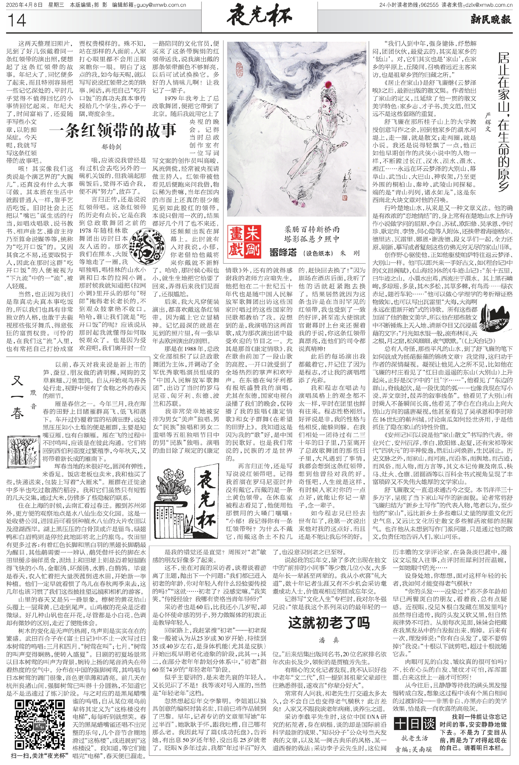 后来,我大凡穿便装演出,都喜欢戴这条红领带。因为戴上它立显精神。记忆最深的就是在见到的照片里,有一张早年去欧洲演出的剧照。