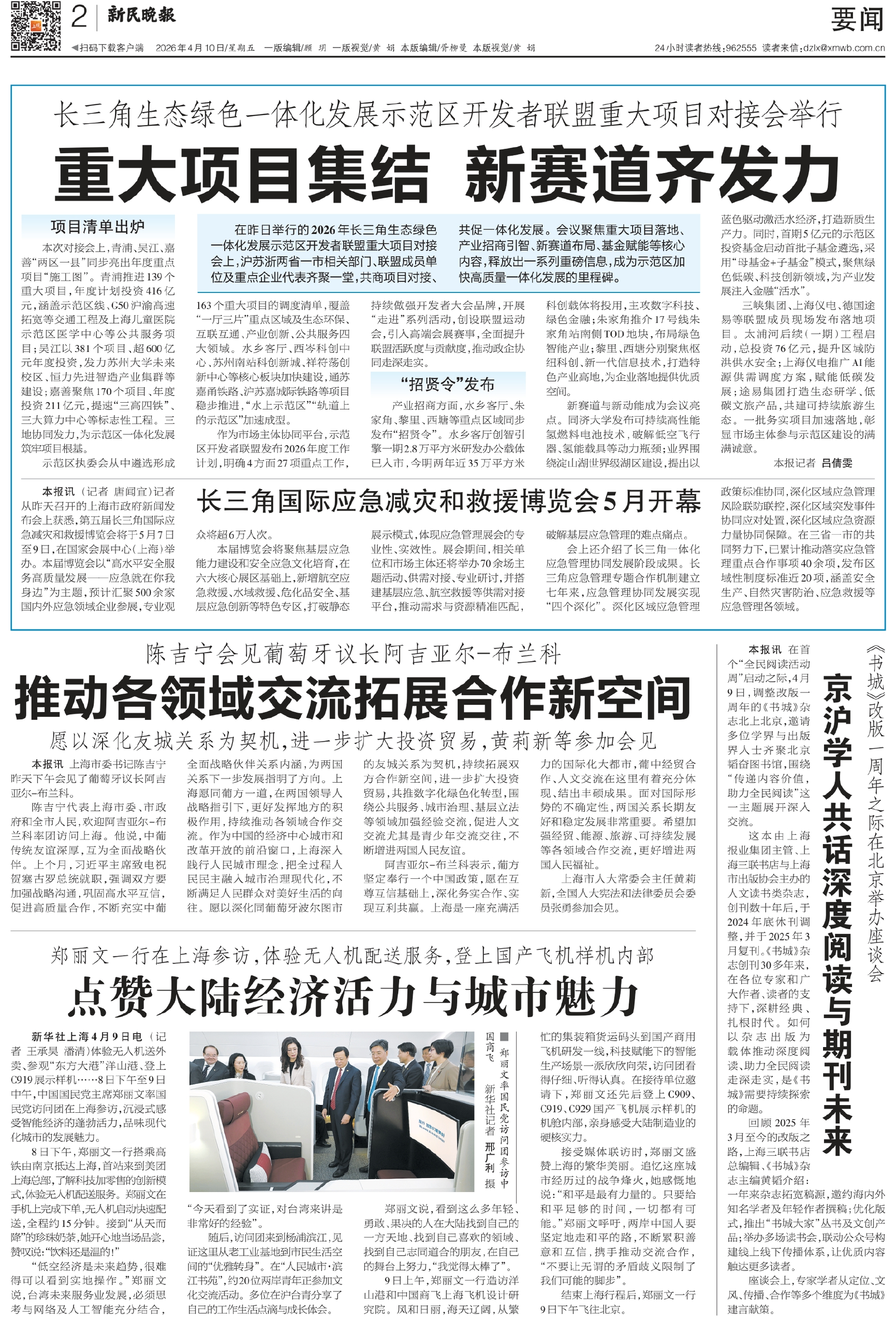 产业招商方面,水乡客厅、朱家角、黎里、西塘等重点区域同步发布“招贤令”。水乡客厅创智引擎一期2.8万平方米研发办公载体已入市,今明两年近35万平方米科创载体将投用,主攻数字科技、绿色金融;朱家角推介17号线朱家角站南侧TOD地块,布局绿色智能产业;黎里、西塘分别聚焦枢纽科创、新一代信息技术,打造特色产业高地,为企业落地提供优质空间。