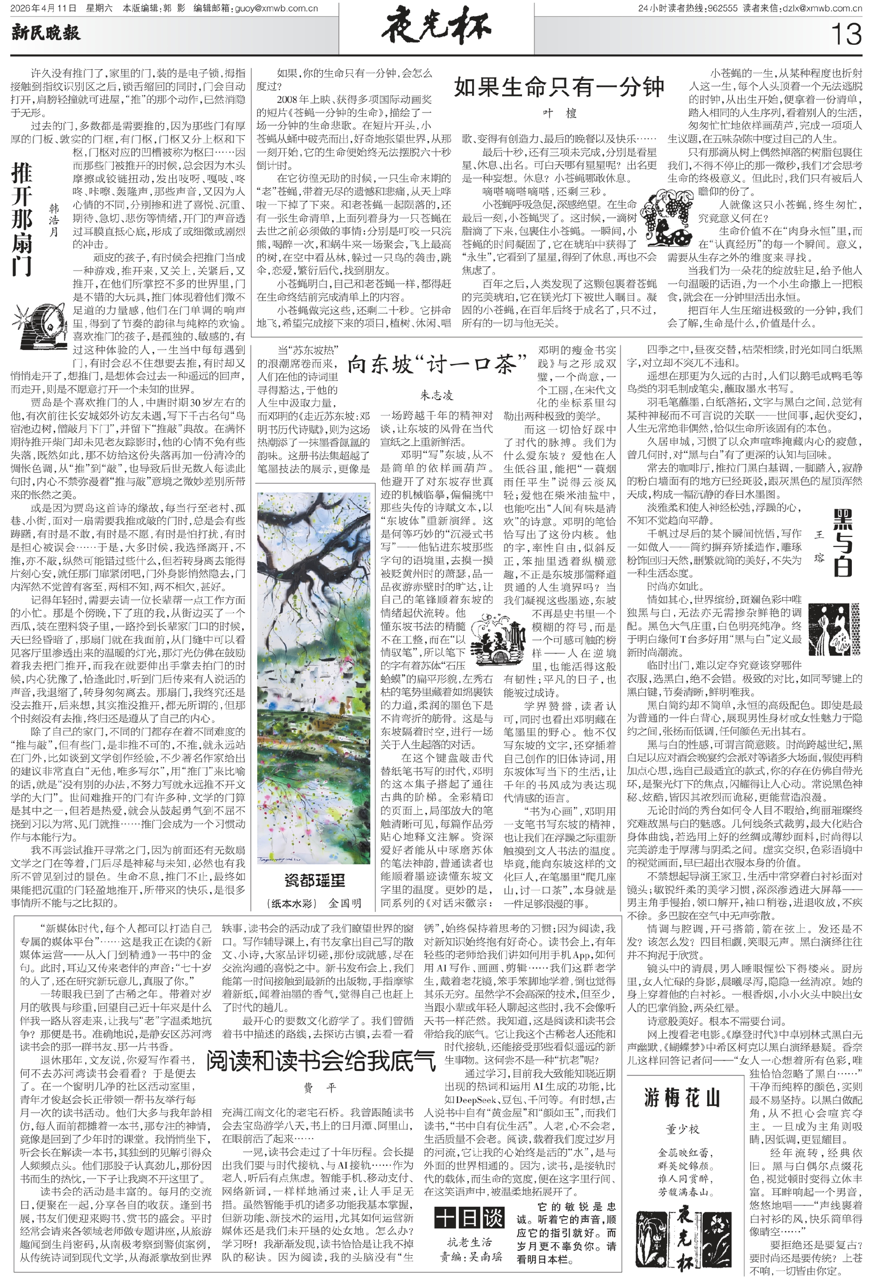 除了自己的家门,不同的门都存在着不同难度的“推与敲”,但有些门,是非推不可的,不推,就永远站在门外,比如谈到文学创作经验,不少著名作家给出的建议非常直白“无他,唯多写尔”,用“推门”来比喻的话,就是“没有别的办法,不努力写就永远推不开文学的大门”。世间难推开的门有许多种,文学的门算是其中之一,但若是热爱,就会从鼓起勇气到不屈不挠到习以为常、见门就推……推门会成为一个习惯动作与本能行为。