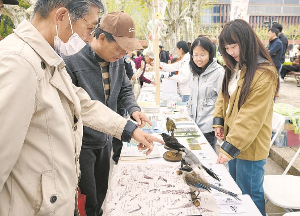上午,汇聚多家专业机构与社会组织的生态市集在复兴公园举行,30个摊位通过科普讲解、标本展示、互动游戏、文创体验等形式激发市民对于生态保护的热情。同步上线的还有“爱鸟助飞”趣味闯关及“自然有TA”主题征文和摄影征集活动,面向全市中小学生传播爱鸟护鸟理念。