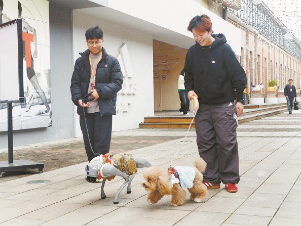 上海国际时尚中心休闲大道上,遛犬的市民与巡游的机器狗不期而遇,都市时尚与人工智能的邂逅碰撞,也体现了当下魔都的生活日常。