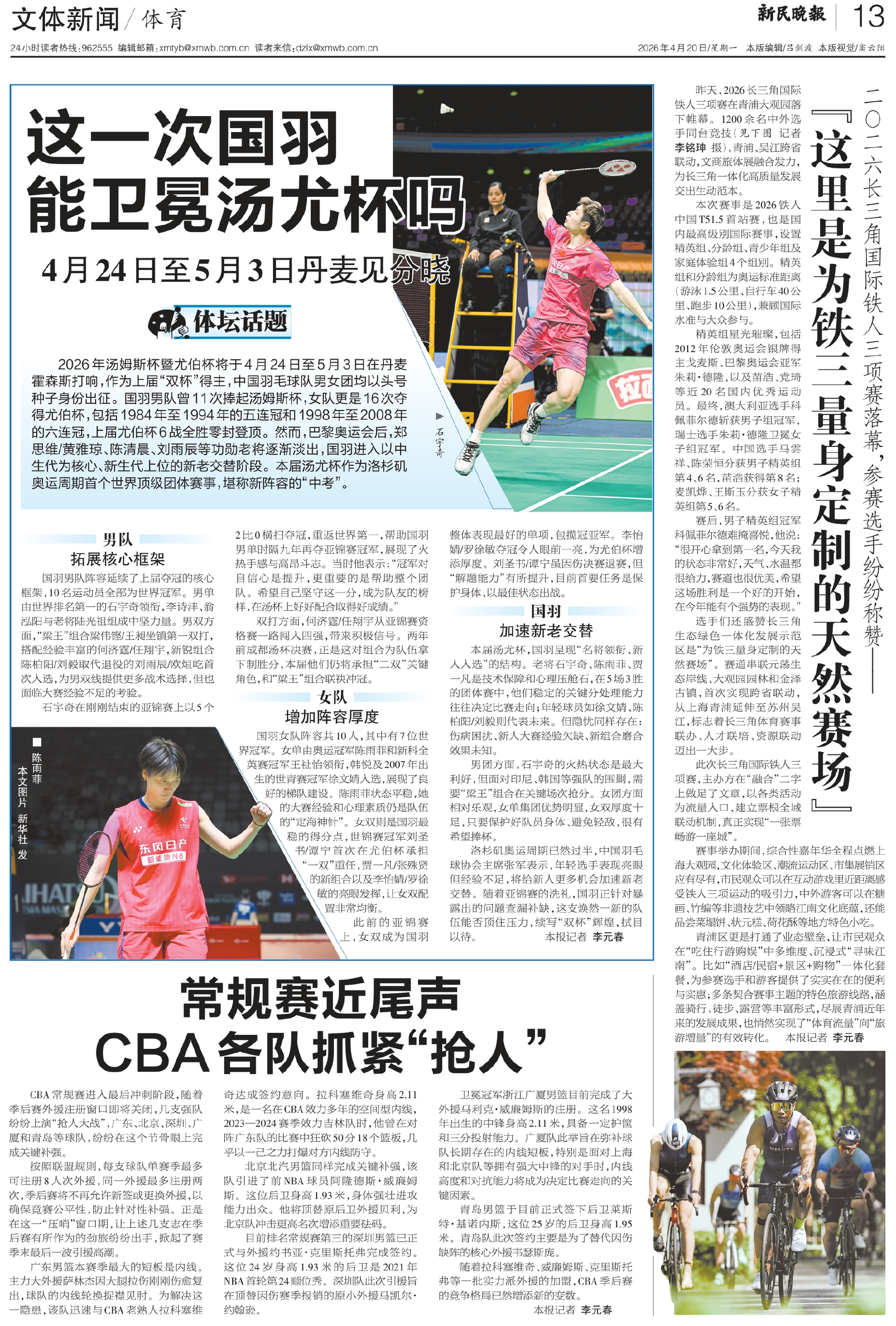 第13版:文体新闻/体育 2026-04-20