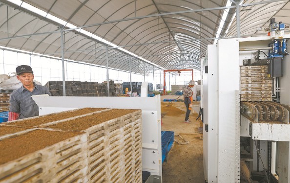 近日,在松江区叶榭镇育秧中心,全区首条智能育秧流水线正式投用,自动化设备高效运转,有序完成铺土、播种、覆土、洒水等工序,育秧车间一派繁忙有序的景象。这条全新智能育秧流水线大幅提升育秧效能,效率较传统育秧流水线提高一倍,用工人数也从原先11人精简至3人,有效降低人力成本、减轻劳动强度。标准化、智能化作业,让秧苗出苗更齐、长势更匀,为后续机械化插秧提供保障。 本报记者 陶磊 通讯员 姜辉辉摄影报道