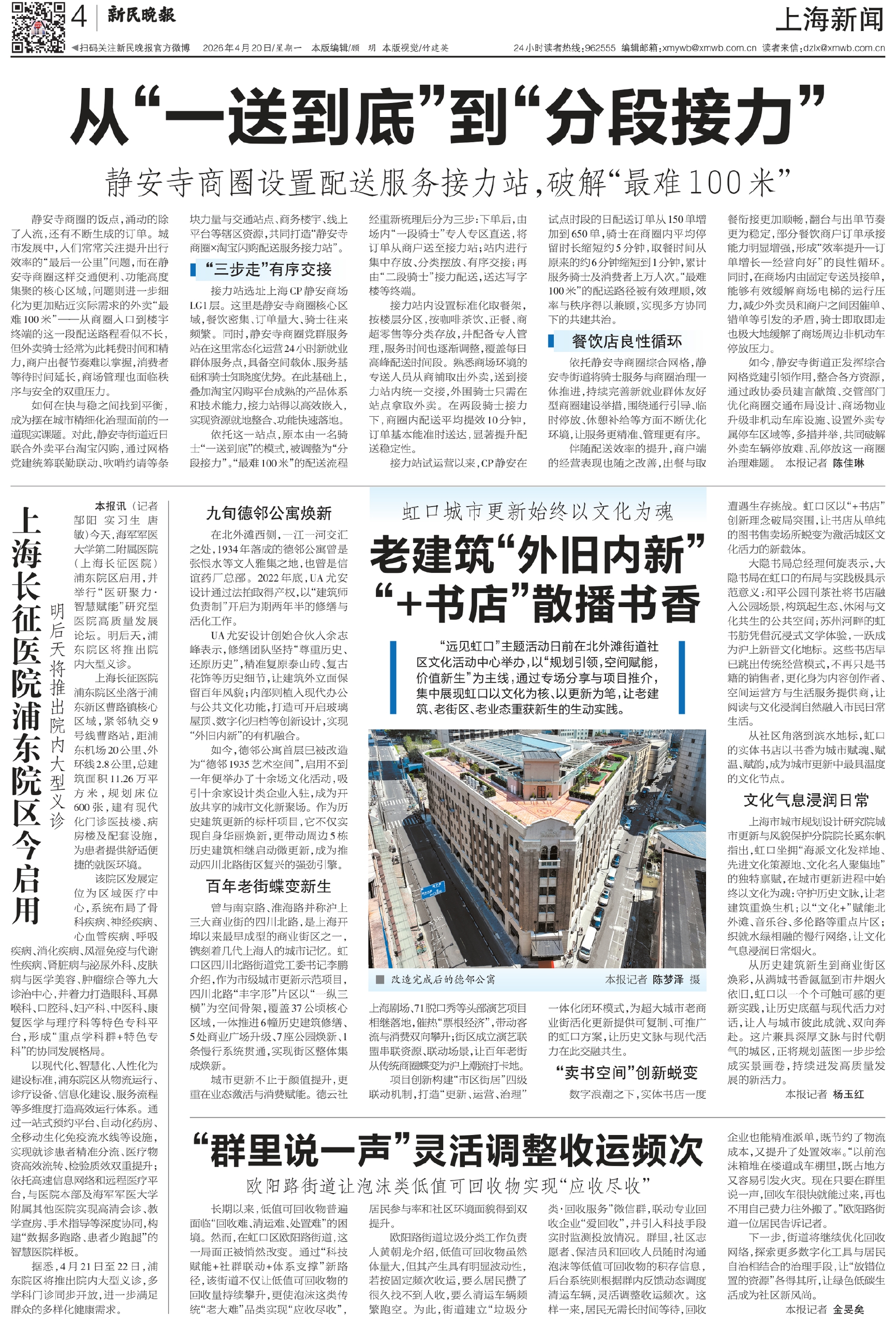 如今,静安寺街道正发挥综合网格党建引领作用,整合各方资源,通过政协委员建言献策、交管部门优化商圈交通布局设计、商场物业升级非机动车库设施、设置外卖专属停车区域等,多措并举,共同破解外卖车辆停放难、乱停放这一商圈治理难题。 本报记者 陈佳琳