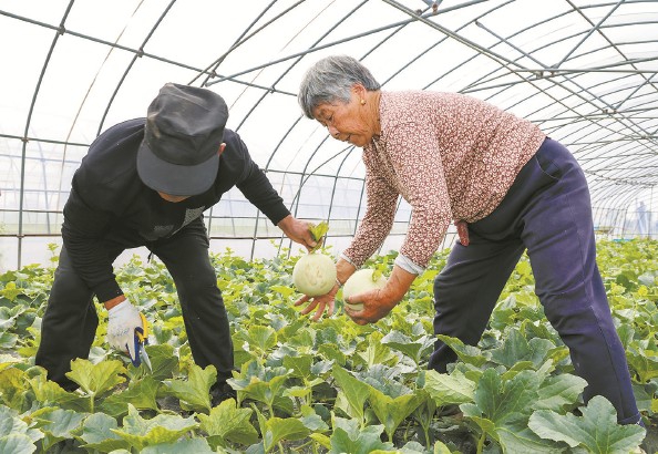 昨天,在金山区朱泾镇珠丰甜瓜种植专业合作社内,珠丰甜瓜迎来头茬采摘,瓜农忙着挑选、采摘、分拣、装箱,一派繁忙丰收景象。 随着气温持续上升,春末夏初的瓜果陆续登场,预计珠丰甜瓜的采摘期将持续至5月底,喜爱甜瓜的市民可前往尝鲜选购。 本报记者 陶磊 摄影报道