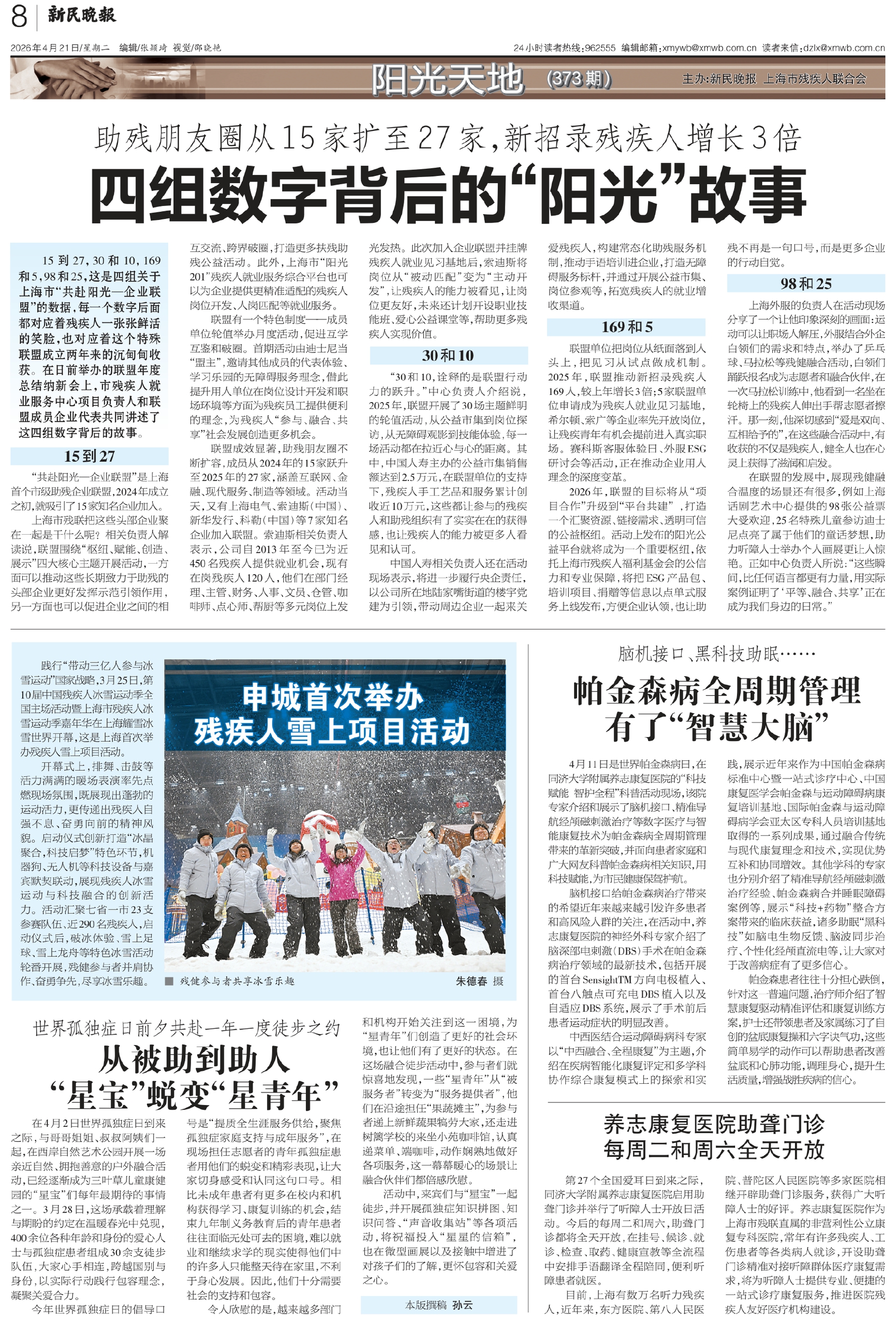 养志康复医院助聋门诊每周二和周六全天开放 帕金森病全周期管理有了“智慧大脑” 从被助到助人 “星宝”蜕变“星青年” 申城首次举办残疾人雪上项目活动 四组数字背后的“阳光”故事