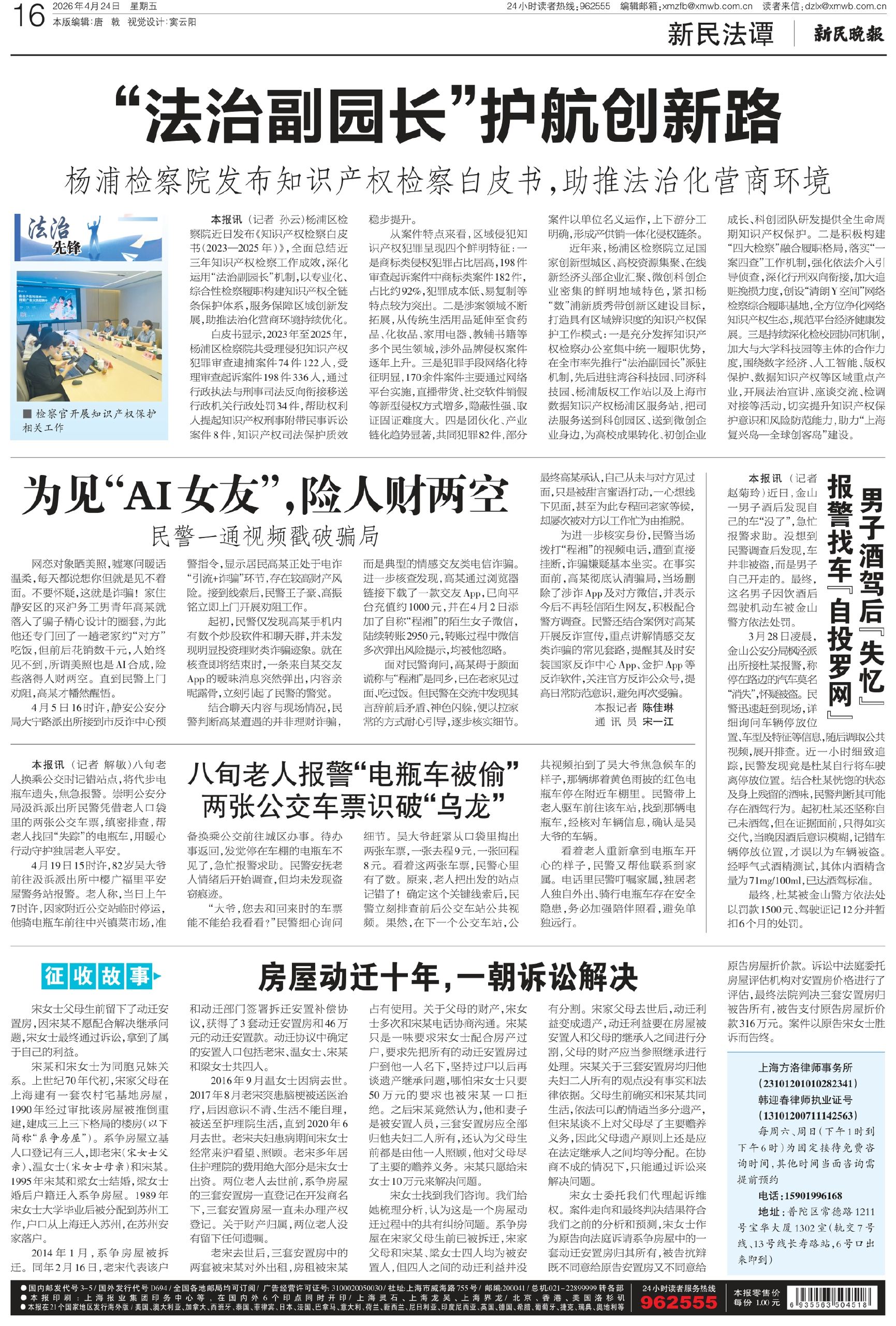 男子酒驾后“失忆” 报警找车“自投罗网” 八旬老人报警“电瓶车被偷” 两张公交车票识破“乌龙” 为见“AI女友”,险人财两空 房屋动迁十年,一朝诉讼解决 “法治副园长”护航创新路