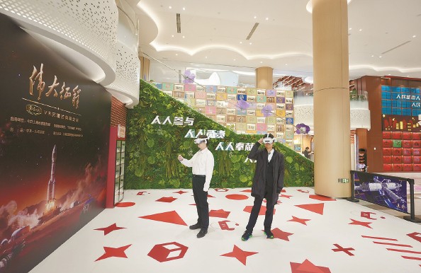 在打浦桥街道党群服务中心,体验者化身“追星者”,体验VR技术赋能红色教育的独特魅力 本报记者 刘歆 摄